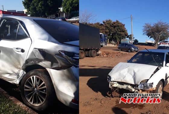 A colisão transversal entre dois veículos resultou em ferimentos leves em um dos condutores, e danos de grande monta em dois veículos na tarde desta segunda-feira (23).