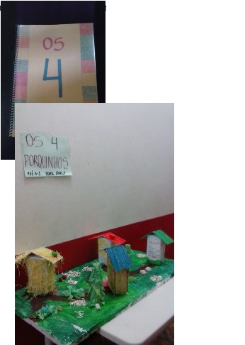 Propus aos alunos uma releitura do livro “Os três porquinhos”. Fizemos quatro tarefas diferentes. A primeira foi imaginar de que material seria feita a casa do quarto porquinho e desenhá-la. A segunda foi desenhar a figura deste quarto porquinho.