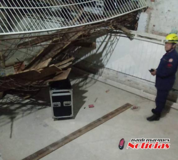 A estrutura de um palco desbabou durante a realização de um baile na localidade do Km 20, no interior de Horizontina.