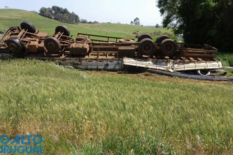 O fato ocorreu por volta das 11h30min desta terça-feira, 1º, quando na chamada “Curva do S”, na ERS-472, o condutor de um caminhão carregado de materiais de construção perdeu o controle do veículo, saiu da pista, e tombou em uma lavoura.
