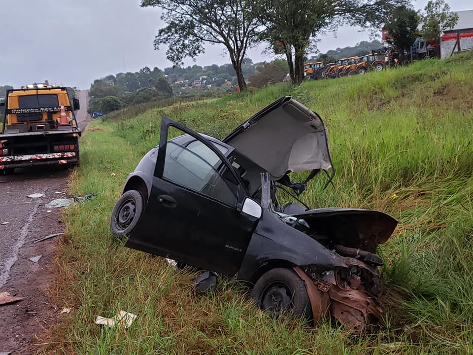 Conforme disposição dos veículos e relato do Motorista do Caminhão, este trafegava no sentido Santo Antônio das Missões a Santo Ângelo. Afirmou para a PRF que o Celta vinha no sentido e quando percebeu que o mesmo tomou a pista em que o Caminhão se encontrava tentou tirar o mesmo para fora da pista mas não conseguiu evitar o choque que ocorreu frontalmente. O motorista do caminhão não se feriu, realizou o teste do etilometro e deu negativo para o uso de álcool. A vítima segundo informações da DP é Carla Janaina Gonçalves Trindade 36 anos.