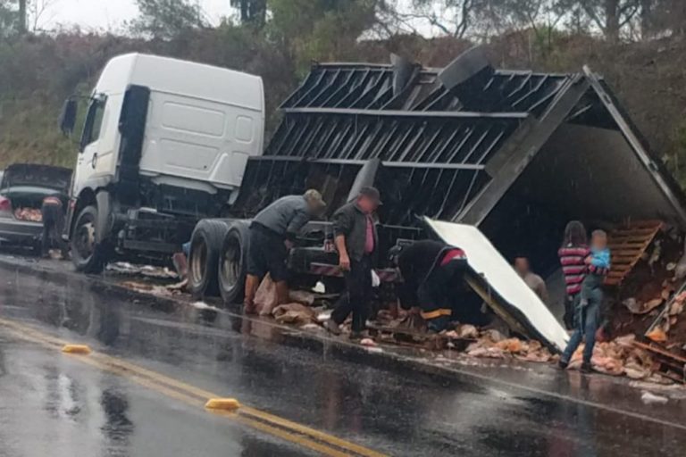 Após acidente carga de caminhão é saqueada ERS 153