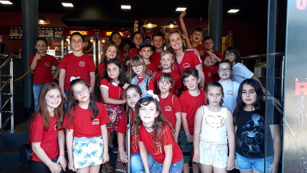 Em comemoração ao mês da criança e fazem parte do Projeto. “Tesouro de uma vida FELIZ” do Programa “ A União Faz a Vida” os alunos do 2º ano da Escola Municipal de Ensino Fundamental Ayrton Senna acompanhados das professoras Ângela Verdi e Aline de Borba no dia 09 de outubro tiveram a oportunidade de assistir uma sessão de Cinema no Cine Globo de Três Passos .