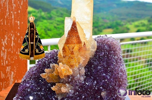 Uma pedra calcita natural no formato da imagem da Santa foi encontrada dentro de um geodo de pedra Ametista. A imagem que lembra muito Nossa Senhora Aparecida, foi encontrada pelo Sr Luiz Trombetta, devoto da Santa. Luiz conta que ao abrir o geodo percebeu a formação de calcita cristalizada em formado de Nossa Senhora, até com a coroa, algo diferente e diz nunca antes ter visto um cristal parecido. – A imagem é um milagre.