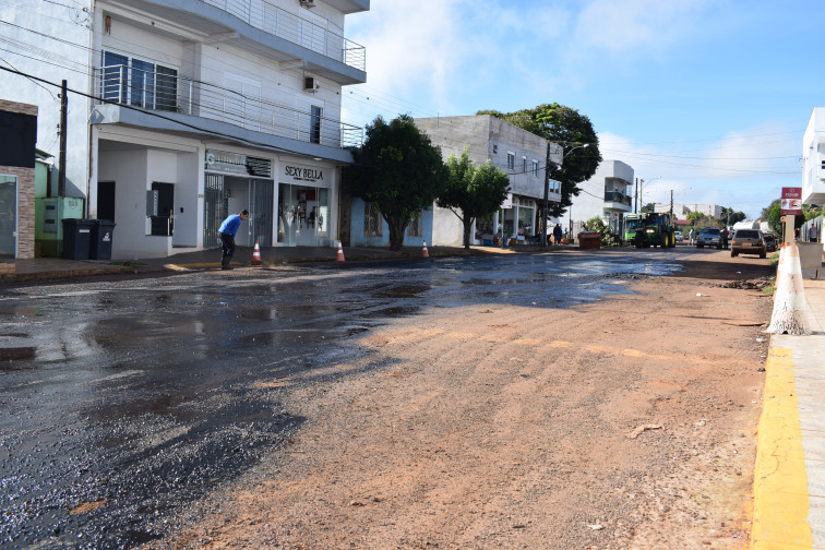 Este trecho da via urbana sofreu com as intensas chuvas do mês de maio, e a rua Tupis é um importante caminho para veículos pesados desviarem do centro da cidade.