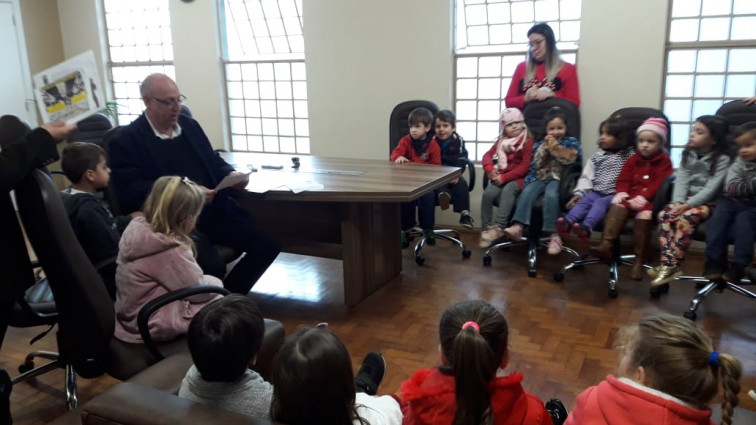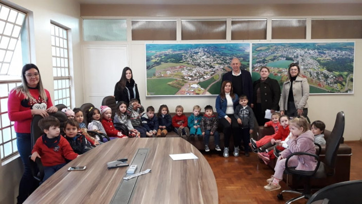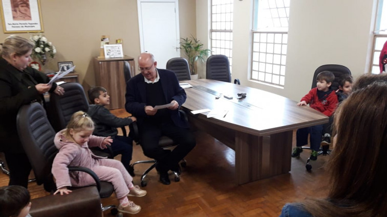 Na manhã do dia 06 de junho, a Diretora Eliziane Hahn Lapazini, professores e alunos da EMEI visitaram o Prefeito Clairton Carboni para fazer o convite ao jantar.