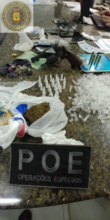 Eles foram identificados como sendo: G.A.B.C., de 19 anos, natural de Ijuí, o qual reside na casa; o outro indivíduo foi identificado como L.V.P., de 19 anos. No momento da abordagem o morador da casa dispensou no solo uma pequena quantidade de cocaína (07g) que estava em suas mãos. Após a localização da droga pelos policiais ele franqueou a entrada dos policiais na casa, onde mais uma porção de crack (22g) foi encontrada sobre o balcão da cozinha, uma porção de papel alumínio para embalar a droga, além de 08 aparelhos celulares e R$ 110,00 em dinheiro.