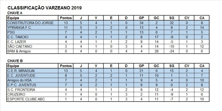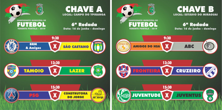 Neste domingo, 16, acontece a sexta rodada do Campeonato Municipal de Futebol de Campo de Tenente Portela, o Varzeano 2019. E esta penúltima rodada promete muito, pois ainda todas as equipes possuem chances matemáticas de classificação. Classificam-se quatro equipes por chave.