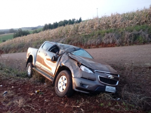 Uma caminhonete S10, com placa de Coronel Bicaco, saiu da pista entre a localidade de Vista Nova e o município de Humaitá.