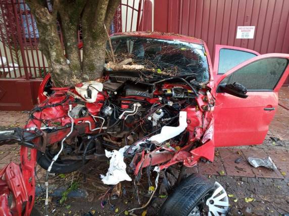 Veículo fica destruído depois de motorista perder o controle da direção, em Palmeira das Missõe