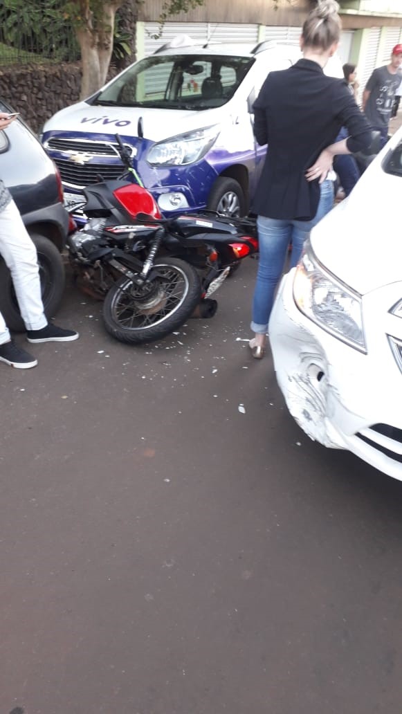 Acidente entre carro e moto deixou o motociclista ferido no final da tarde de hoje (22). O caso aconteceu na Rua 19 Outubro, nas proximidades da Secretaria de Saúde de Ijuí.