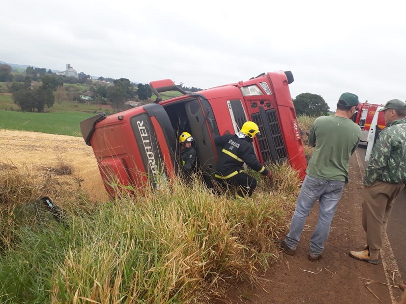 Por volta das 10h30 foi registrado o tombamento de uma carreta às margens da ERS 522, entre os municípios de Augusto Pestana e Jóia.