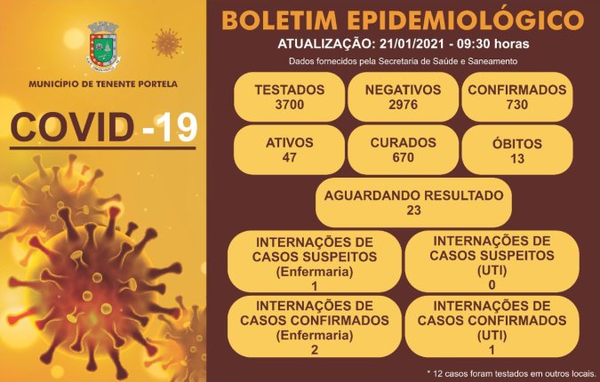 Boletim epidemiológico de Tenente Portela - Dia 21/01/21