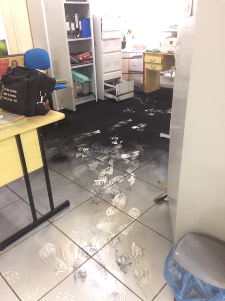 Por volta das sete horas da manhã quando uma funcionaria chegou para o trabalho se deparou com todo o estrago, comunicando ao vigilante do dia, e este teria entrado em contato com a Brigada Militar, que repassou o caso a policia civil.