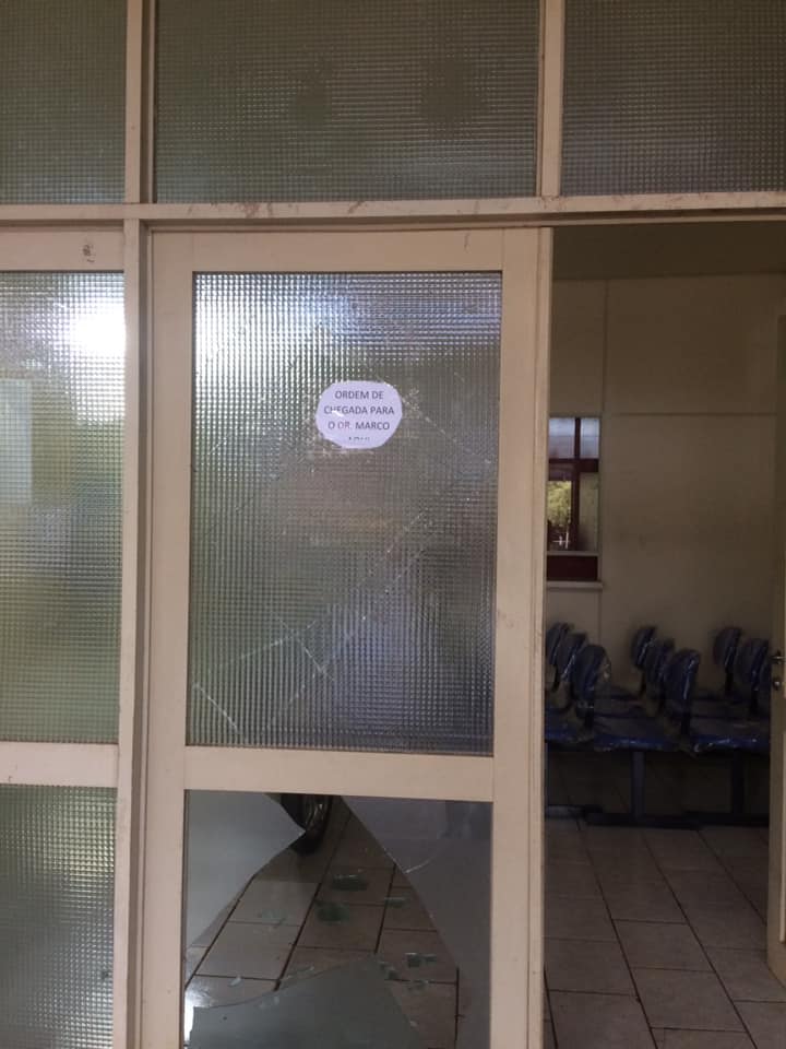 Esta sendo registrado nesta manhã atos de vandalismo e furto no ESF 02, conhecido postão, onde elementos teriam quebrado os vidros de uma das portas de entrada, e adentraram estourando todos os cadeados que encontravam pela frente.