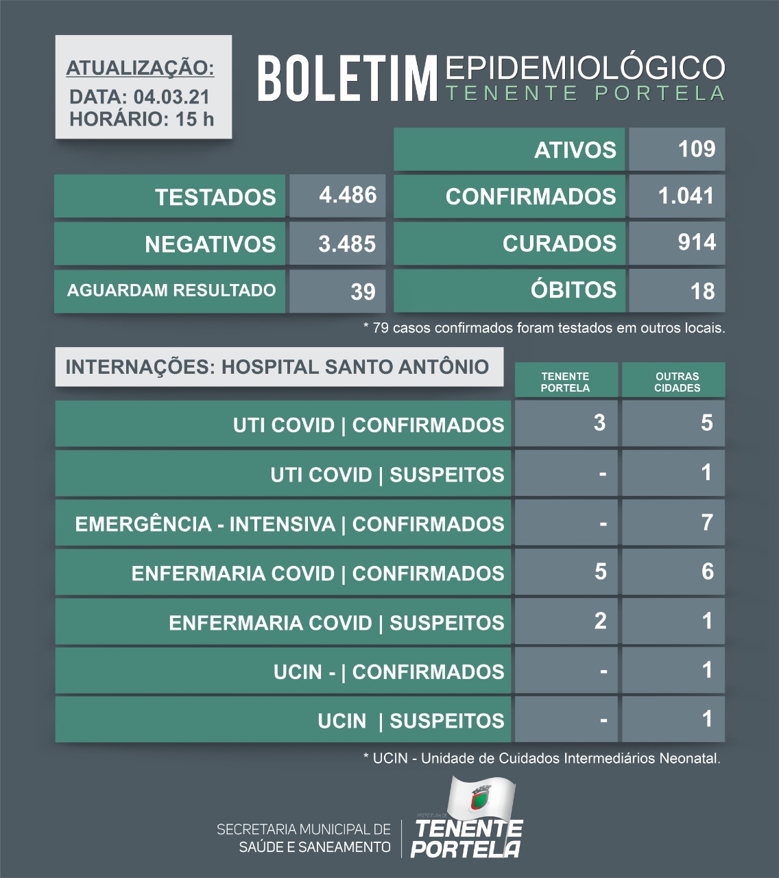 Boletim epidemiológico de Tenente Portela - Dia 04/03/21