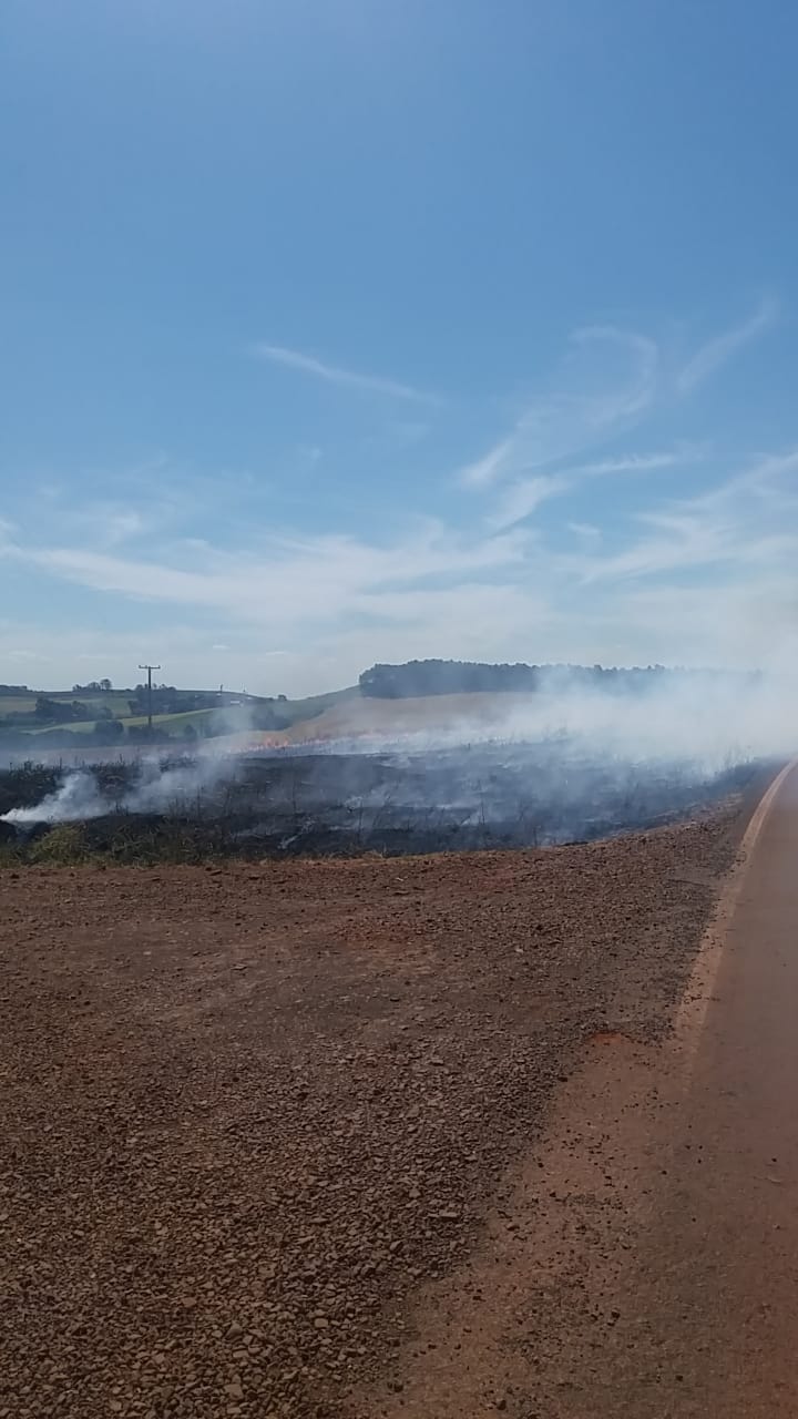 Foi o que passou um motorista dando conta de que o fogo em uma lavoura está causando densa fumaça, o que pode atrapalhar a visibilidade dos motoristas que usam este trecho.