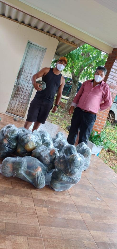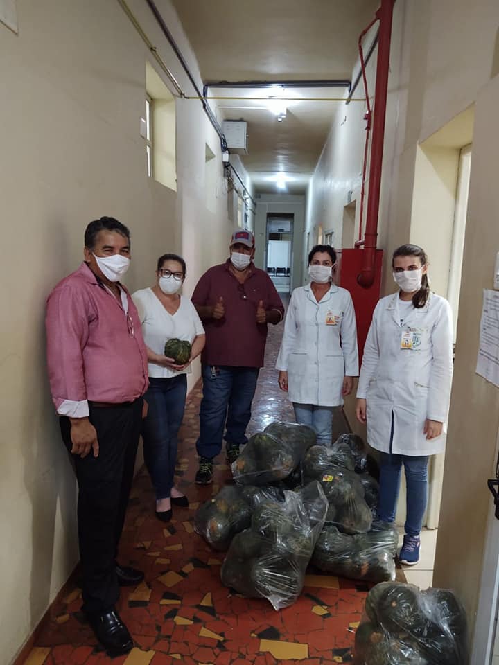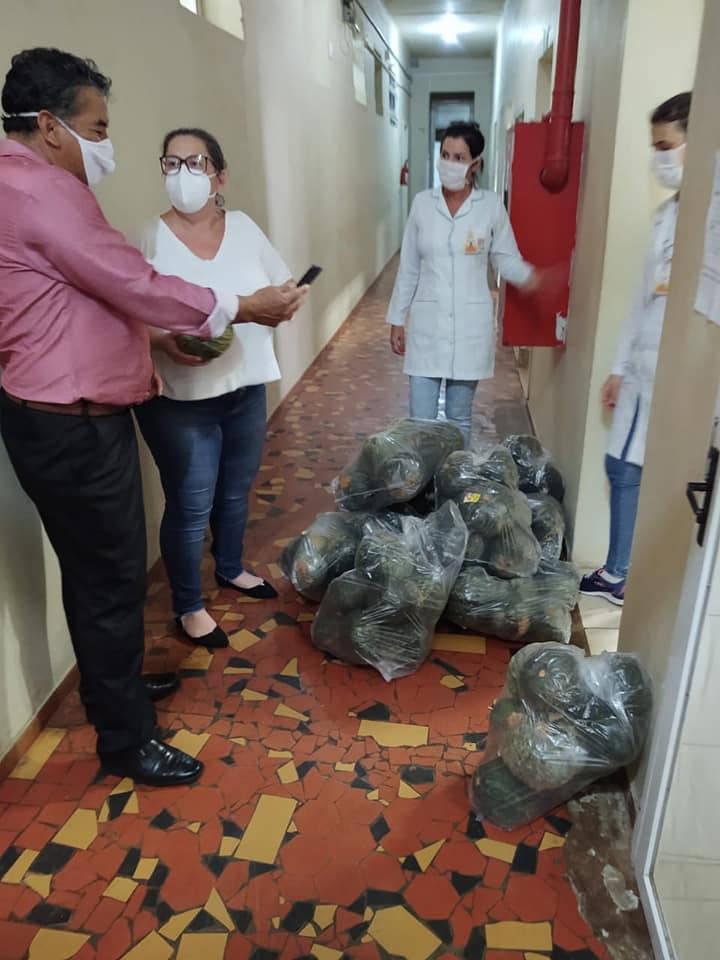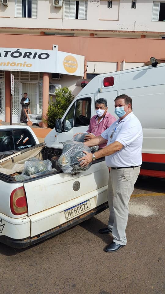 Dentro do projeto de ajuda ao Hospital Santo Antônio de Tenente Portela-RS, o cacique Carlinhos Alfaiate, fez a entrega de doações de moranga cabotiá, aquela casa de saúde.