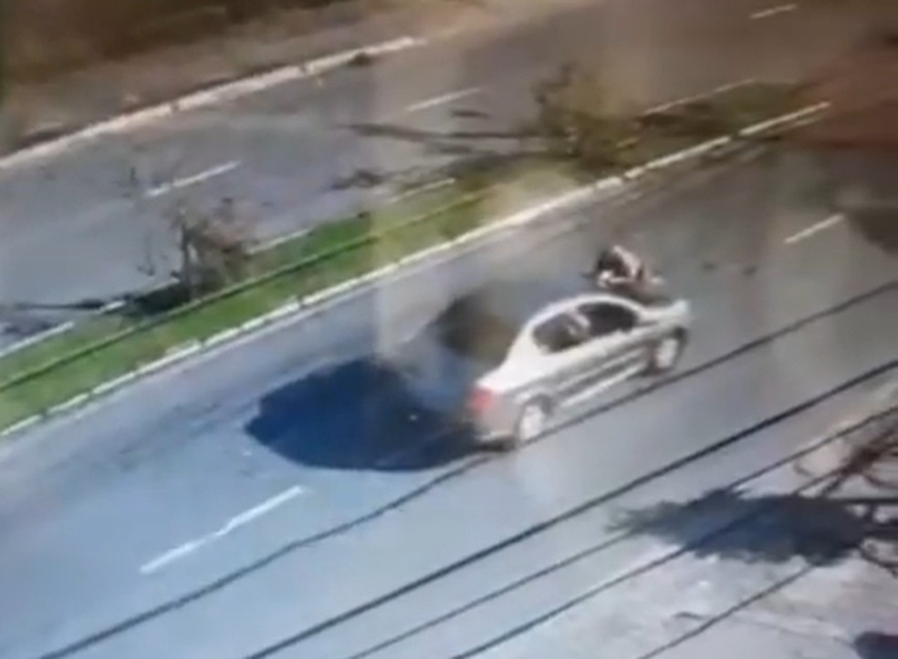Policial chegou a ficar sobre o capô do veículo e foi arrastado por cerca de 200 metros até cair desacordado na via.