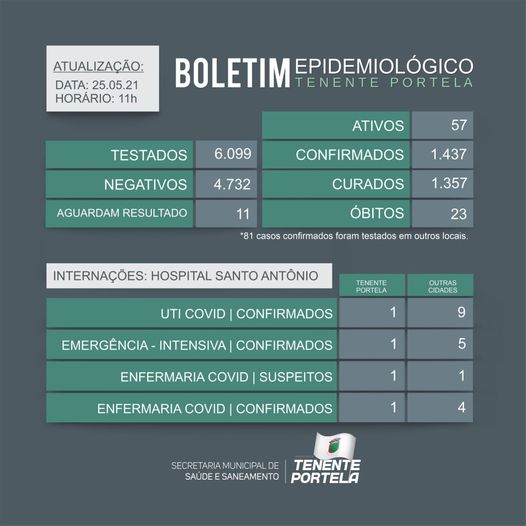 Boletim epidemiológico de Tenente Portela - Dia 25/05/2021