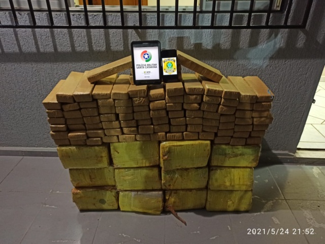 A Polícia Militar de Maravilha, em conjunto com a Polícia Rodoviária Federal, fez a apreensão de grande quantidade de maconha na BR-282, por volta das 20:h20 desta segunda-feira (24) no acesso para Maravilha. A droga totalizou 295 quilos.Após receber informações da Polícia Rodoviária Federal de que teria dois veículos transitando em atitude suspeita na BR-282, sentido Paraná a Santa Catarina, sendo um gol bolinha de cor branca e um Peugeot 307 sedan de cor prata, a guarnição da Polícia Militar deslocou até o trevo. Logo, chegaram os veículos e foi efetuado a ordem de parada. Quando o condutor do gol visualizou a viatura, deu sinal de luz para o veículo a frente. Nesse momento, a guarnição ultrapassou o gol e conseguiu abordar o Peugeot em frente a Aurora Alimentos, dando ordem de desembarque aos ocupantes. O condutor do Gol estacionou em torno de 200 metros antes é saiu do veículo correndo. A Polícia Militar tentou a abordagem, mas ele fugiu do local. A polícia identificou que o Peugeot era batedor do Gol, onde estavam 295 quilos de maconha e uma máquina de passar cartão.A droga, os veículos e os dois ocupantes do Peugeot foram conduzidos para a delegacia. O condutor do veículo Gol não foi localizado.Também prestaram apoio as guarnições de Iraceminha, Cunha Porã e a da Operação Horus.