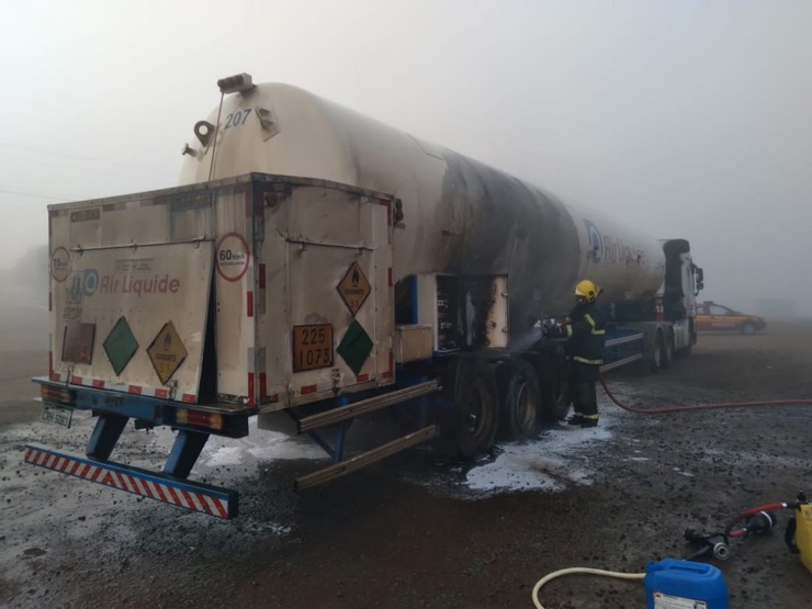 Um caminhão, carregado com oxigênio líquido, foi atingido por um incêndio na segunda-feira (14), na BR-158, em Cunha Porã, no Oeste de Santa Catarina. De acordo com informações do Corpo de Bombeiros, que atendeu a ocorrência, havia a possibilidade de o líquido ocasionar uma grande explosão devido às chamas.