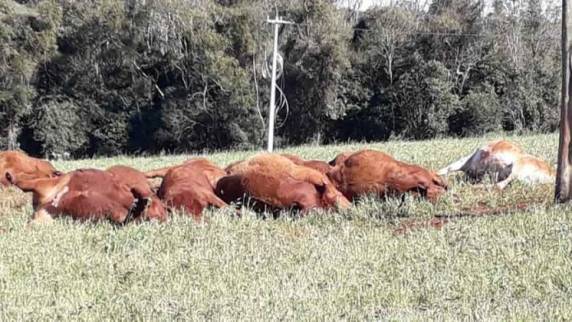 Cabo de energia arrebenta e mata gado eletrocutado em Ijuí