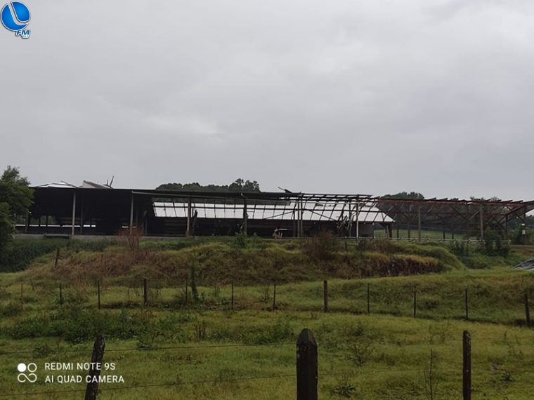 Na propriedade da N & N CECCHIN, na comunidade de São Rafael, o vento forte, com duração de cerca de 03 minutos, causou apreensão e danificou diversas instalações. A parte mais atingida foi o Free Stall de vacas em lactação.
