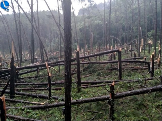 Segundo estimativa, aproximadamente mil árvores foram danificadas, quebradas em seus caules, conforme mostram as imagens.