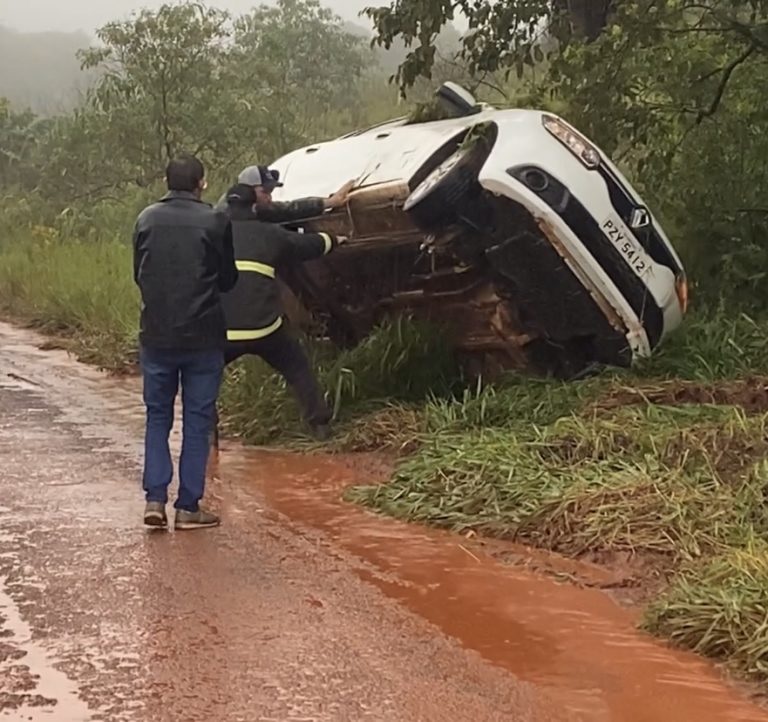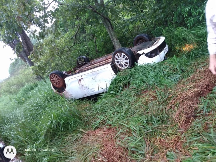 O veículo trafegava no sentido Miraguaí à Tenente Portela, quando o condutor perdeu o controle da direção, capotando o veículo.