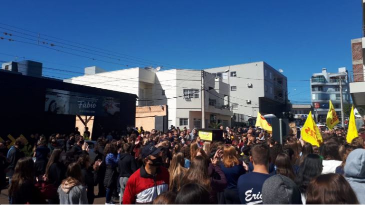 Na manhã desta quinta-feira, 31, alunos do Instituto Estadual de Educação Erico Verissimo e da Escola Estadual de Ensino Médio Águia de Haia, de Três Passos, realizaram uma manifestação em frente à 21ª CRE – Coordenadoria Regional de Educação.