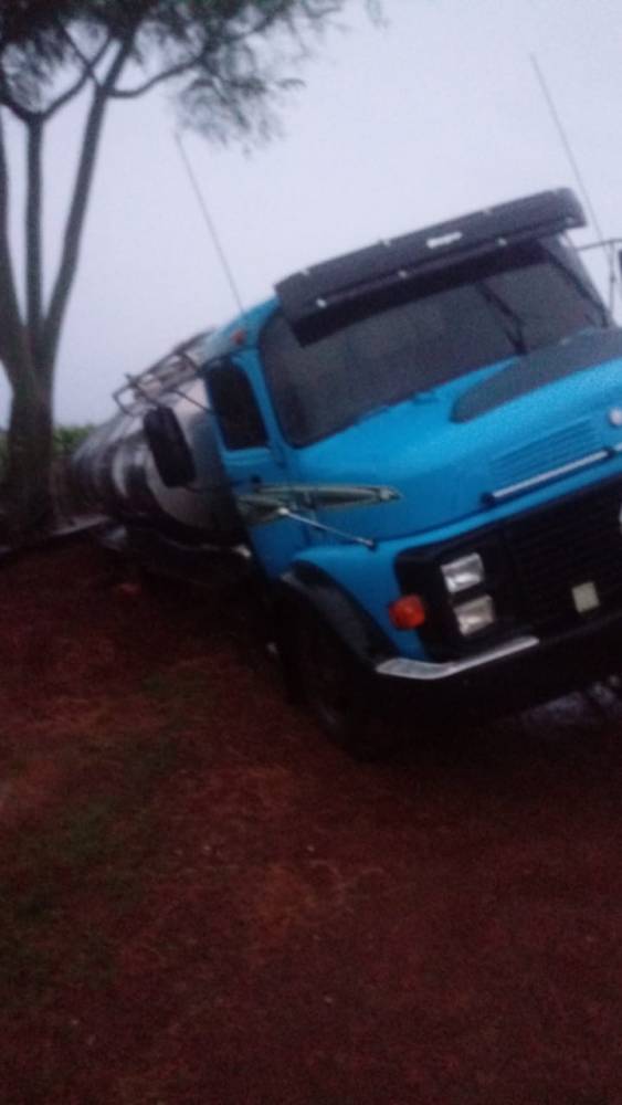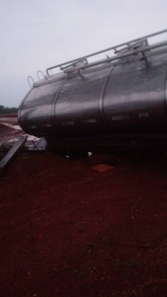 Um caminhão transportador de leite caiu em uma vala na latera de uma estrada no interior de Três de Maio.