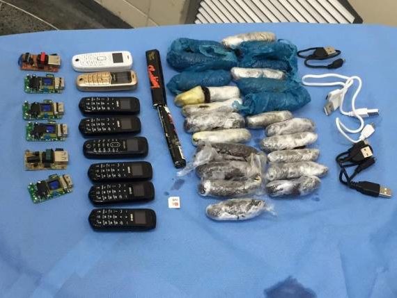No estômago dele foram encontrados oito celulares, seis placas eletrônicas, 23 invólucros com substâncias suspeitas, duas embalagens de papel de seda e três cabos para celular.