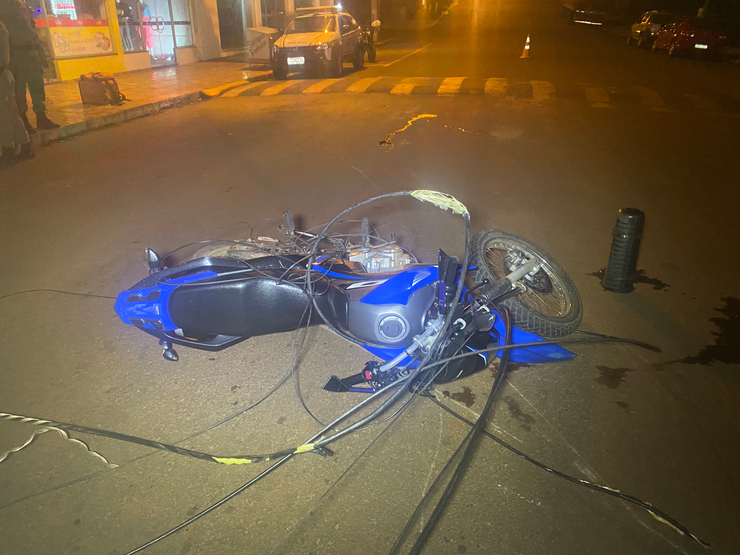 Um motociclista precisou ser atendido pelo Serviço de Atendimento Móvel de Urgência (SAMU) após a moto que conduzia enroscar em fios caídos na rua, na noite deste sábado, 2 de abril, no centro de Tenente Portela.