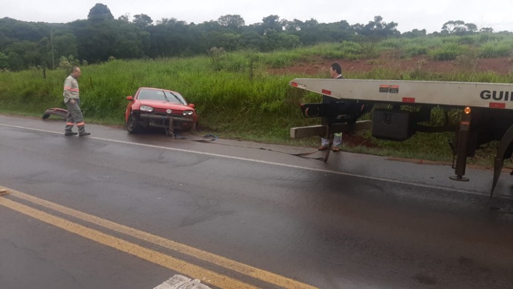 Segundo as informações obtidas pela Reportagem Policial da Rádio Uirapuru, um veículo VW/Gol, vermelho, com placas padrão Mercosul, saiu da pista após o pneu estourar. O veículo acabou girando sobre a pista e saindo da rodovia, colidindo em um barranco.