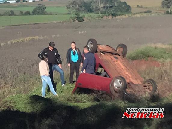 Capotamento de veículo deixa mulher ferida na RS 342 em Três de Maio