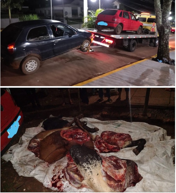 Ao término da ocorrência o preso foi liberado, as carnes foram restituídas ao proprietário dos animais e os veículos recolhidos ao pátio do guincho.Material apreendido:• 1 VW Gol• 1 Fiat Pálio
