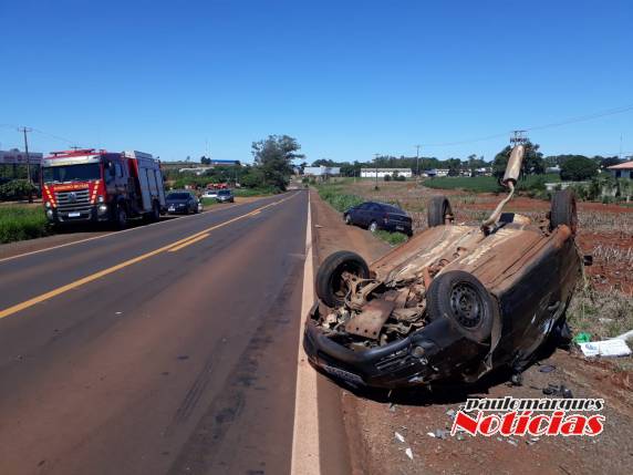 Veículo capota após colisão na RS 342 em Três de Maio