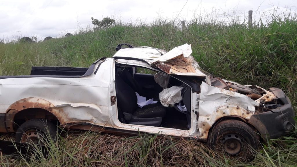 A Fiat Strada saiu da rodovia e capotou várias vezes em uma ribanceira por volta das 6h