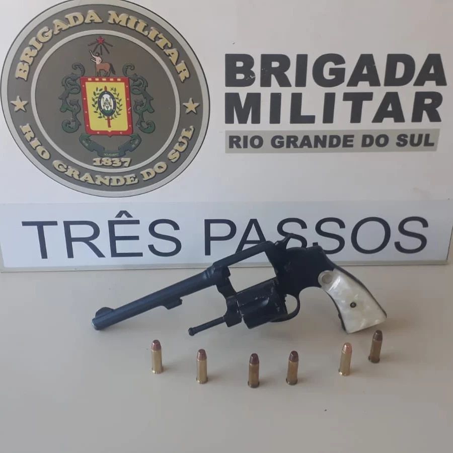 A abordagem de um homem no bairro Santa Inês em Três Passos, por volta das 4h20min do domingo (24/4), resultou numa prisão em virtude de porte ilegal de arma de fogo. Na ação, o efetivo da Brigada Militar (BM) apreendeu um revólver calibre 38 e seis munições.