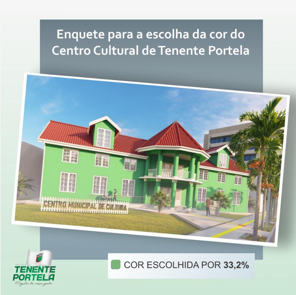 Foi definida através de uma enquete a “nova” cor do Centro Cultural Aurélio Porto de Tenente Portela. O espaço que passa por reforma terá a manutenção da cor verde como predominante. A decisão foi divulgada nesta semana pela prefeitura após a finalização da enquete iniciada no mês passado.