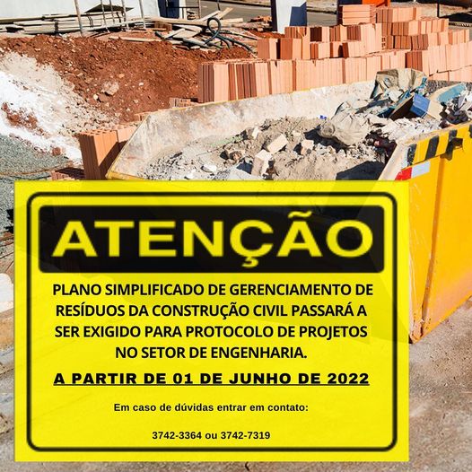 Nesse sentido, recentemente a Secretaria Municipal de Planejamento, o Departamento do Meio Ambiente e profissionais da engenharia e arquitetura da cidade se reuniram para debater sobre os Planos de Gerenciamento de Resíduos de Construção Civil – PGRCC que passarão a ser exigidos para aprovação dos projetos junto ao setor de engenharia da prefeitura.