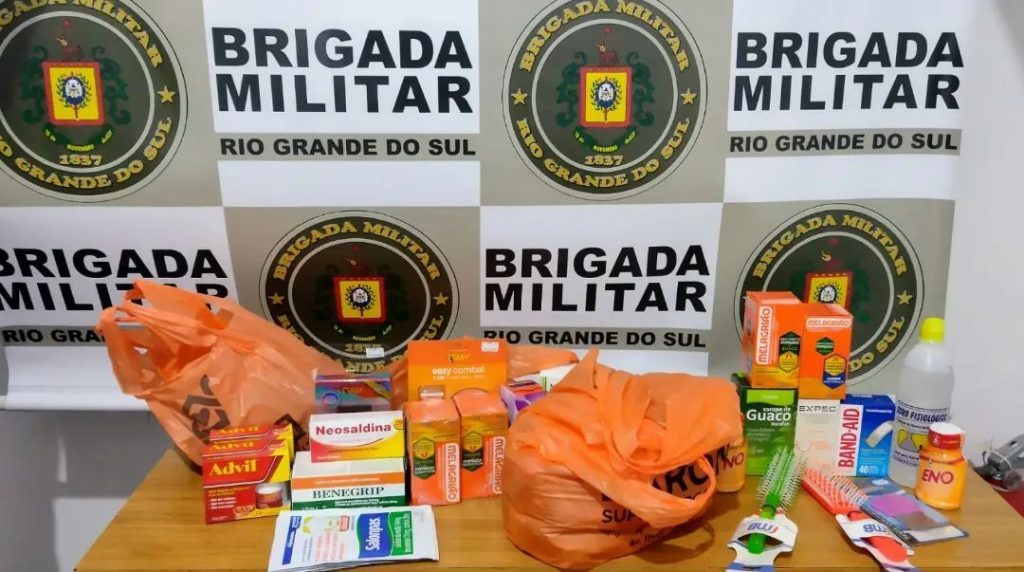 A Brigada Militar foi informada de um furto ocorrido em uma farmácia sendo realizado diligências e de posse das características da suspeita foi localizada e em revista pessoal apreendido com ela os objetos furtados, os quais foram reconhecidos pelos representantes das empresas, sendo avaliados em torno de R$ 800,00.