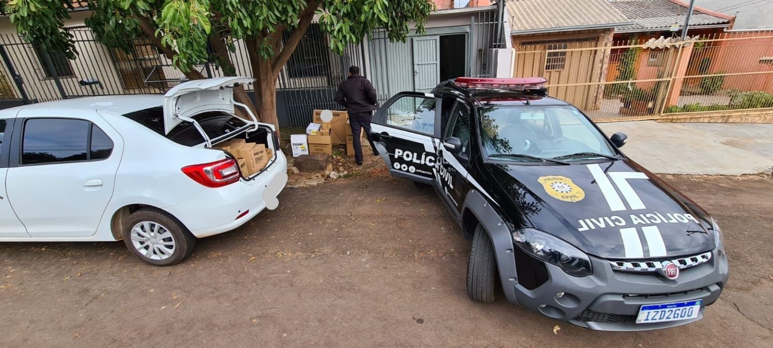 Conforme a polícia, em um dos locais alvo dos mandados foram localizadas diversas mercadorias como lustres, materiais de iluminação, roupas e calçados