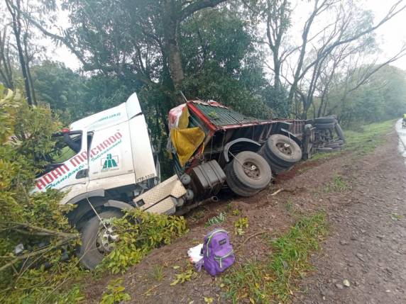 Carreta do Uruguai tomba no trecho Passo Fundo-Ernestina