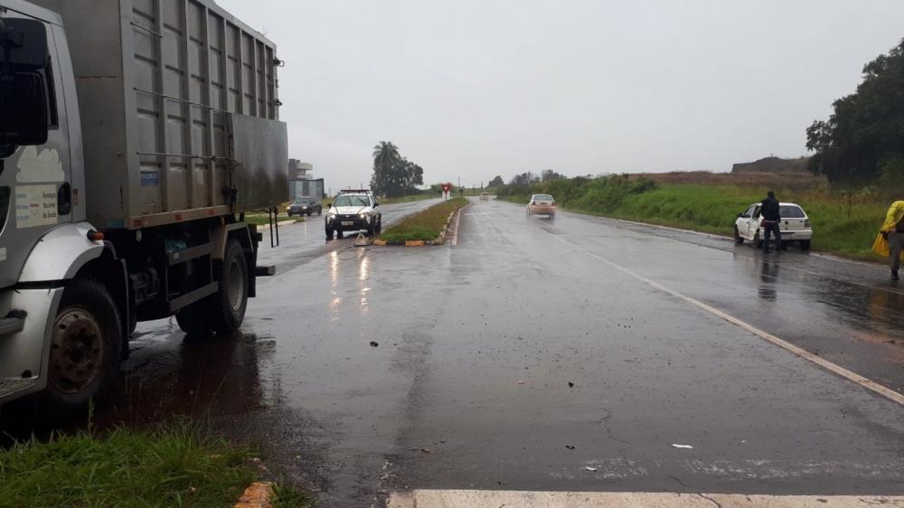 Conforme informações preliminares, a colisão envolveu um VW Gol, placas de Braga, que deixava a cidade no trevo da saída para Bom Progresso, e um caminhão, placas de Tiradentes do Sul, que seguia na direção de Tiradentes, causando ferimento na cabeça de um jovem, passageiro do Gol. Outra jovem passageira também foi encaminhada para atendimento médico pelo Corpo de Bombeiros ao Hospital de Caridade. Os condutores dos dois veículos não se feriram.