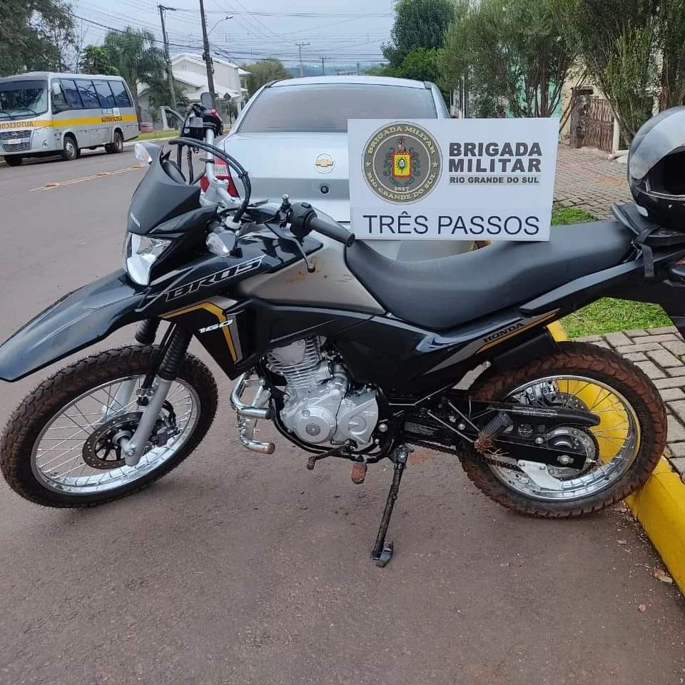 Policiais Militares do 7° BPM recuperaram, nesta quarta-feira, 8, uma motocicleta que havia sido furtada na madrugada em Três Passos.