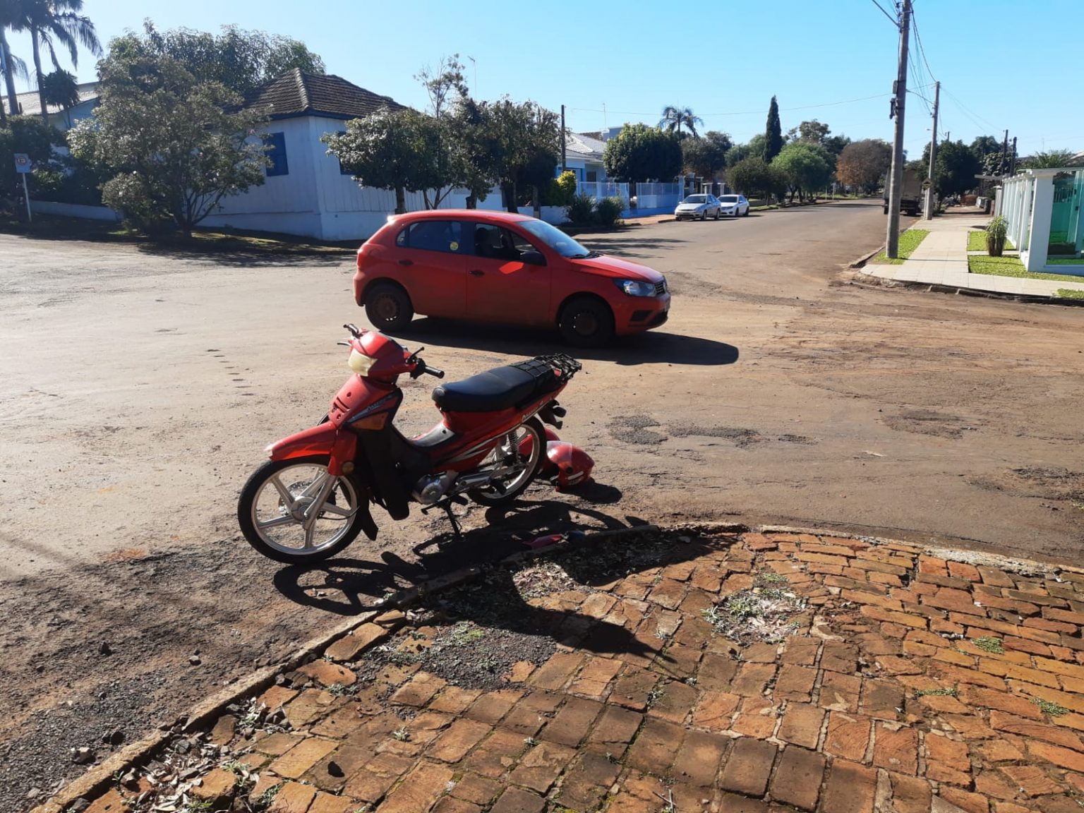 A colisão envolveu um VW Gol e uma motocicleta no cruzamento das ruas Júlio de Castilhos e Padre Feijó