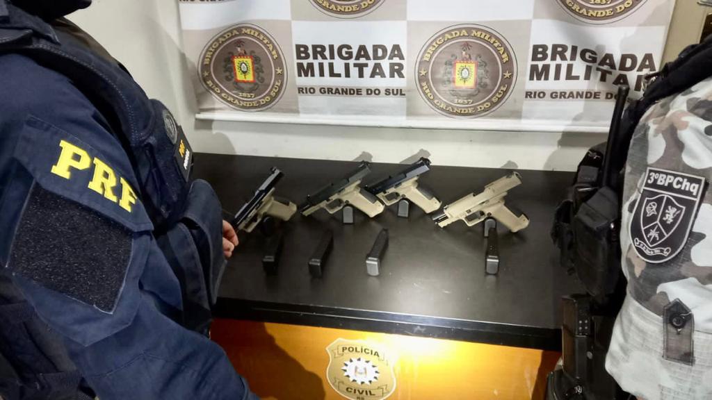 Durante uma ação direcionada ao combate à criminalidade, os policiais abordaram o motorista de um Peugeot 208 que entrava no Rio Grande do Sul, vindo de Santa Catarina. No carro, encontraram 4 pistolas turcas calibre 9mm. Elas estavam escondidas dentro do painel.