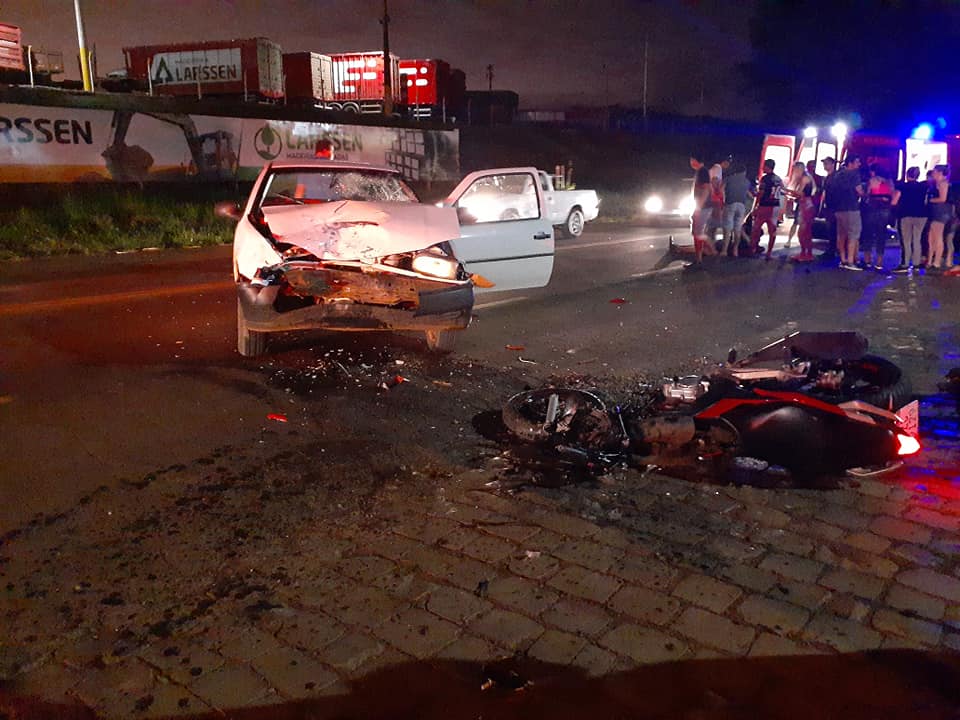 Colisão envolvendo um veículo Gol e uma motocicleta deixou uma mulher morta em Três Passos